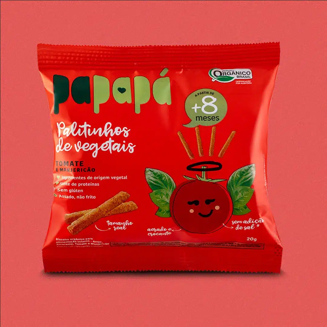 Palitinhos de Tomate e Manjericão Papapá – Orgânico – 20g
